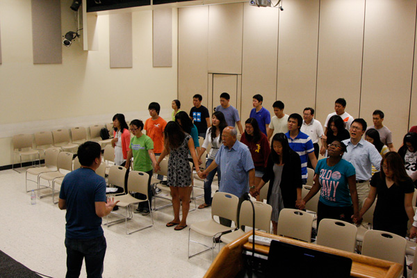 Jefferson Lee (front) leading prayer.
