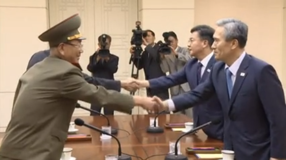 The meeting comes after North Korea launched dozens of missiles into the waters into the sea between the Korean peninsula and Japan, although the ballistic missiles fired by the North are banned by the UN. The face-to-face meeting was a first for both Park and Abe since taking office in 2013 and 2012, respectively.